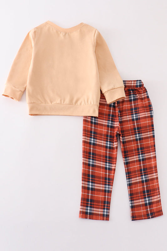 Orange turkey embroidery boy set