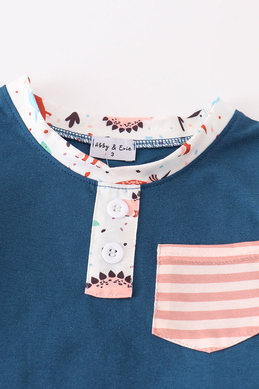 Navy dinosaur print boy set