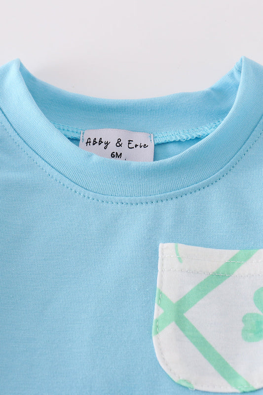 Blue St.Patricks clover boy bloomer set