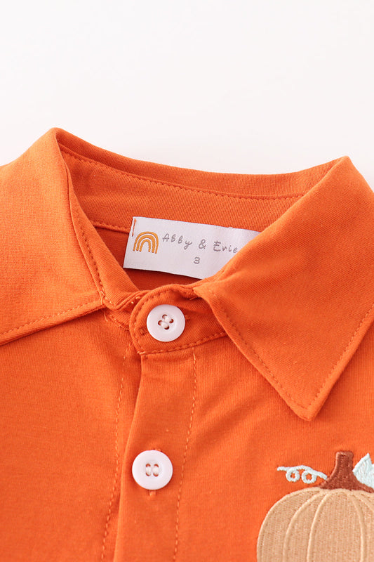 Brown pumpkin embroidery boy shirt