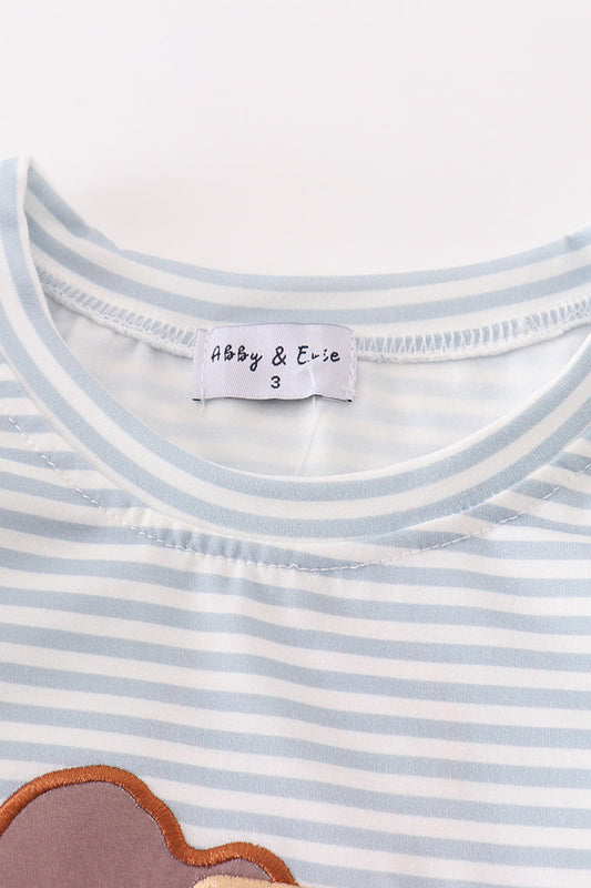 Blue stripe muck car applique boy top